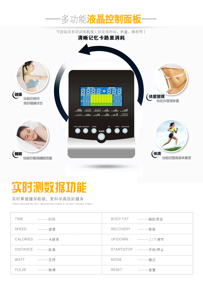 时尚控制面板,越大LED显示窗口,呈现更多运动数据